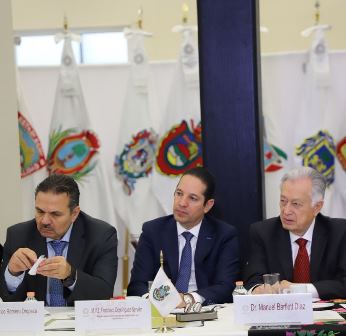 *La reunión de trabajo estuvo encabezada por Manuel Velasco Coello, gobernador del estado de Chiapas y presidente de la Conferencia Nacional de Gobernadores (CONAGO), misma que tuvo como recinto el salón Bernardo Quintana Arrioja del Colegio de Ingenieros Civiles de México, A.C.