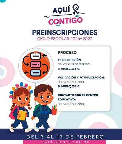Los resultados de distribución de los espacios para alumnas y alumnos de nuevo ingreso a preescolar y los que hayan rechazado la preasignación, se publicarán en la página oficial de la USEBEQ del 15 al 17 de abril.