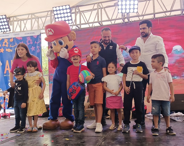 En este festejo, alrededor de cinco mil 500 personas convivieron con Mario Bros, Mickey Mouse, súper héroes, princesas y demás personajes, con quienes pudieron tomarse fotos y ver en presentaciones musicales.