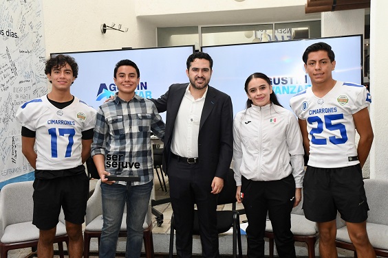 El Senador estuvo acompañado en esta rueda de prensa por Leonardo Alarcón Montes y Axel Cruz Cano, del equipo de futbol amerciano Cimarrones y que fueron seleccionados nacionales del Friendship Bowl; Santiago Aldair Ángeles Reyex, Premio Estatal de la Juventud en la categoría de Labor Social.