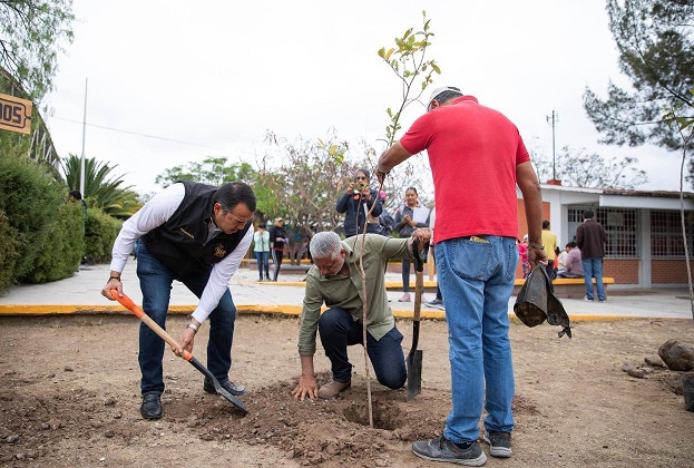 Por lo que a través de la jornada ¡Cumpliendo en Arcila! se llevó a cabo una faena en la que fueron sembrados 20 árboles en la escuela secundaria “16 de septiembre”, con el objetivo de mejorar las condiciones ambientales del plantel y se donaron 20 más a la Casa Ejidal.