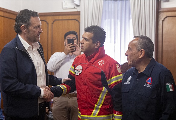 El mandatario estatal dialogó con Edgar Martínez sobre su participación y la de los canes en las zonas de desastre, actos de valor que los llevaron a rescatar a cuatro personas con vida y a 36 fallecidas en 11 días de operación en Adıyaman, Turquía; también conversaron sobre la colaboración que hubo con las autoridades del país afectado, al atender al llamado de emergencia.