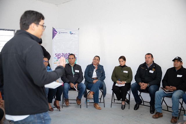 Durante su estancia en la comunidad, el alcalde sanjuanense, miembros del Ayuntamiento, secretarios y directores, sostuvieron una reunión con liderazgos, en la que se abordaron temas como la participación ciudadana, seguridad, mantenimiento urbano y atención a las necesidades de la localidad, los cuales fueron expuestos por las y los ciudadanos presentes en la Casa Ejidal.